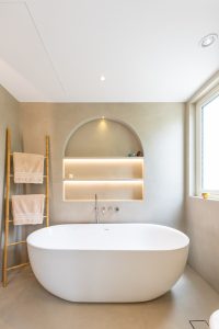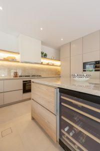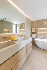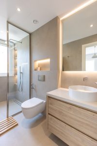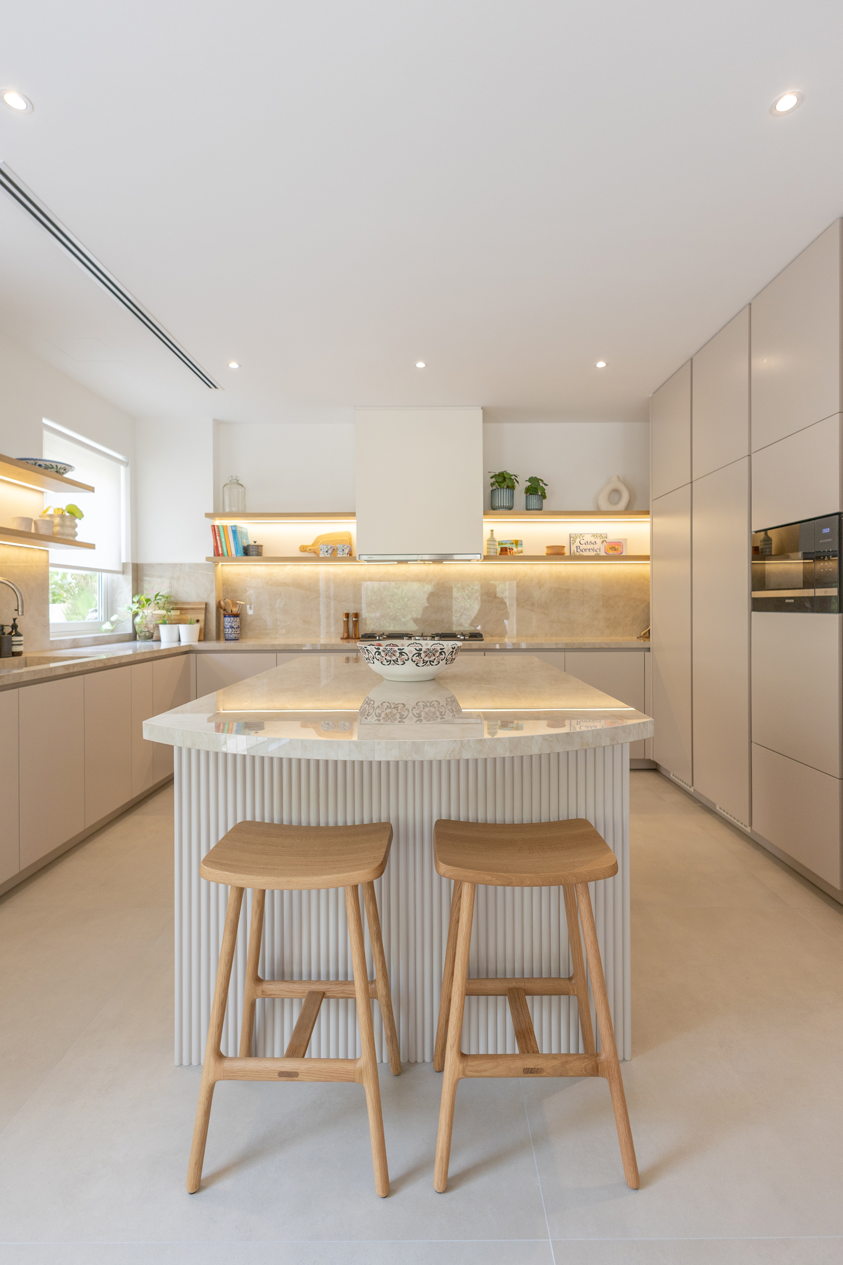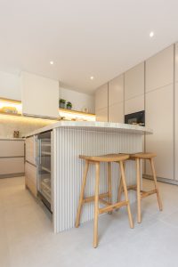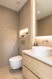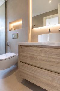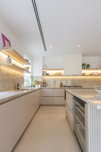 Our Al Mahra, Arabian Ranches project was a joinery and carpentry showcase, where we transformed key spaces with bespoke design and fitout. The kitchen was fully redesigned and fitted with sleek, functional details tailored to the client’s lifestyle. In the master suite, we created a custom walk-in wardrobe offering ample storage and thoughtful organization. The highlight was the master bathroom, designed as a serene retreat with a double-sink vanity, a standalone tub framed by a striking feature wall, a rainfall shower with bench seating, and refined gold accents throughout. Textured tiling and elegant finishes brought the perfect balance of luxury and functionality to the space.